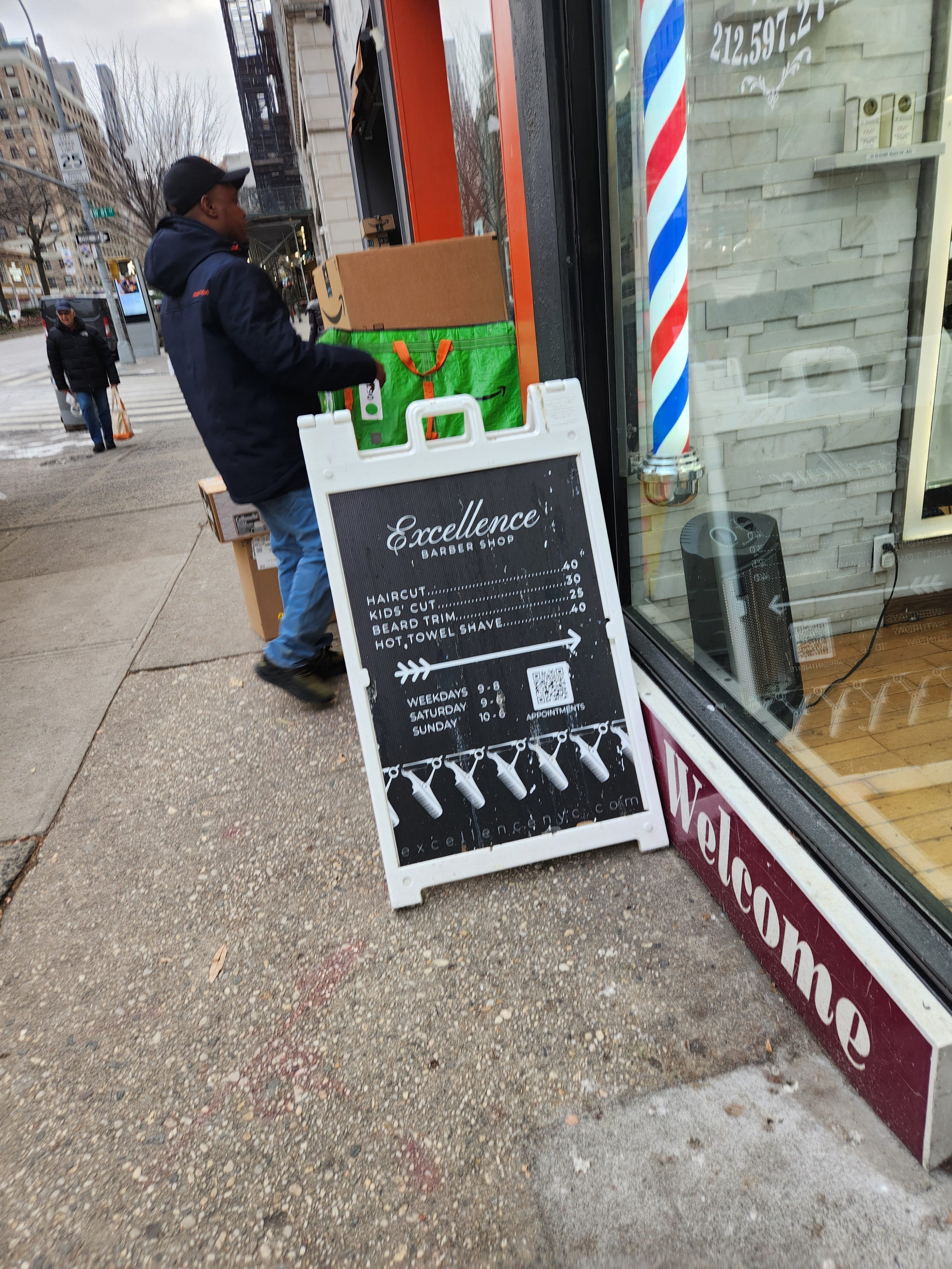 My photo, not the shop I've been going to since COVID inflation made haircuts equally unaffordable everywhere, but mine is also called "Excellence". My shop has Arab barbers, but I go there not just because they're Arabs but also because they straight-razor shave the back of my neck and give me a great hot towel.